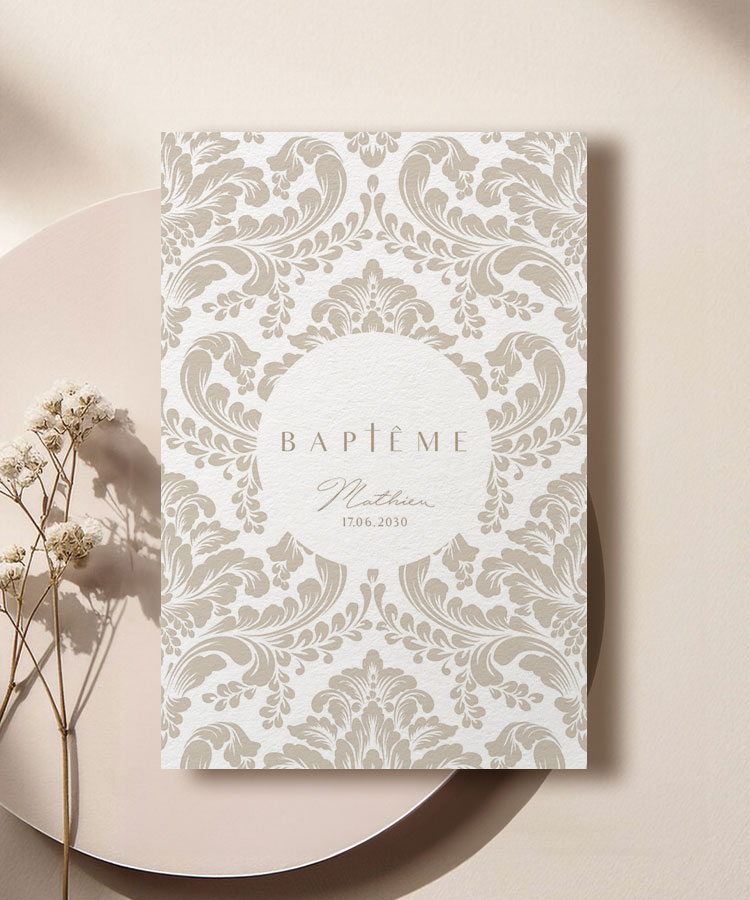 Faire part de baptême motif beige